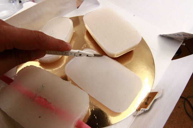 Por otra parte, hacer la forma final con el elenco-tazón de fuente, he personalmente noté que es casi imposible remodelar luego el silicio, incluso corte quirúrgico lanceta o bisturí. Ver Fig.15