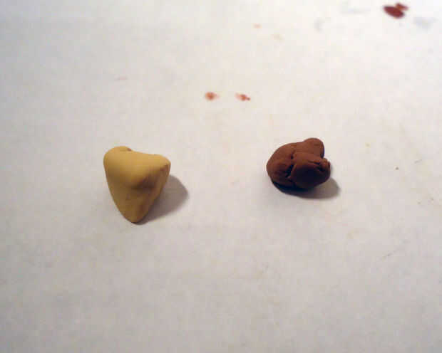 Paso 1: El cuerpo / taza Tomar la arcilla de polímero rosa claro y rodar en un óvalo con los extremos planos.Paso 2: La espuma Rodillo hacia fuera la arcilla blanca en una larga y delgada 'serpiente'.Paso 3: La espuma 2 Tomar el pedazo largo de arcil