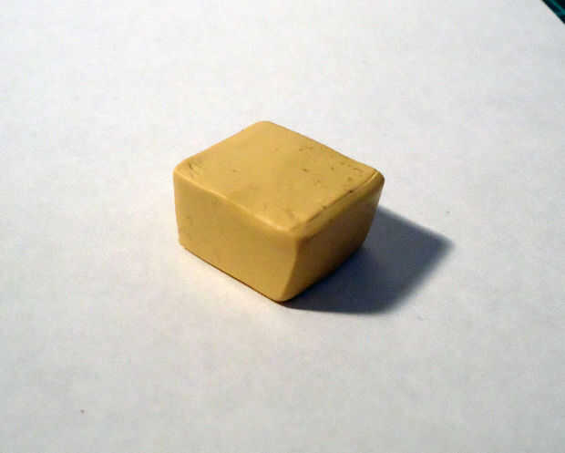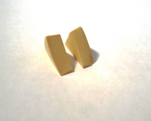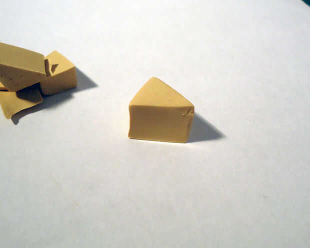 Tome un pedazo de arcilla tan grueso como quieras tu pastel a ser. Cortar en un triángulo y luego cortar dos piezas similares triángulo.