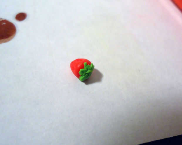 How about a strawberry, too? Hmm. carece de arándanos, vamos a añadir unos cuantos más... Recuerde, usted puede seguir añadiendo decoraciones como usted quiere! No ser apresurados y hornear la arcilla antes de que estés completamente satisfecho con tus decoraciones!
