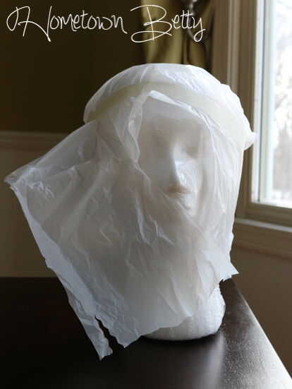 Usted puede necesitar dos y con cinta adhesiva para crear un cuadrado grande suficiente para cubrir la circunferencia de su cabeza. (Grabado dos pedazos juntos, así que podía estar seguro de mi oye peluca cubre a la nuca de mi cuello.)