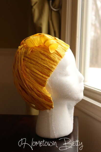 Usando una pluma, lápiz o los dedos, rizar la cinta de la rafia. Para mantener la forma y el estilo de los rizos, utilice cinta de doble cara para mantener la forma. Utilice cinta de doble cara más cuidadosamente colocar rizos que empareja el peinado de la fotografía.