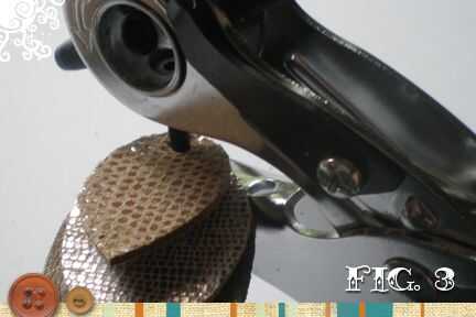 Un conjunto de las tres formas uno encima del otro de la pila y cuidadosamente perforar un todo en uno de los extremos. Había perforado el agujero alrededor de un cuarto de pulgada del extremo con el tamaño de golpe más pequeño disponible. Repita este paso con el segundo grupo de cuero.