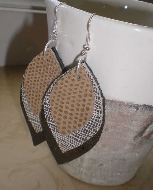 Pendientes de cuero hechos a mano son lindos y elegantes. puede hacer pendientes en diverso color cuero chatarra con diversos patrones. Me encanta la pluma pendientes así que hice un par de pendiente de la pluma de cuero y unos pendientes de lujo sim