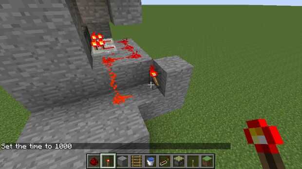 Conectar los pistones a un inversor que es el bloque con la antorcha de Redstone.