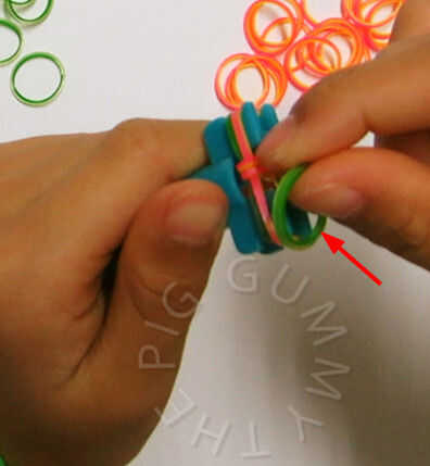 Gobierno-Gobierno es tu pulsera debe como cuando listo.Paso 1: Lo que usted necesitaUsted necesita un telar, bandas y un gancho.Paso 2: Empezando Hacer una figura de 8 con una banda y ponerlo en las 2 clavijas. Entonces puso dos bandas más en eso. po