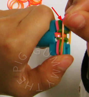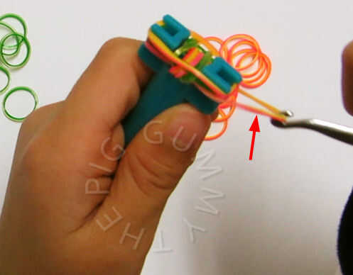 Tutorial pulsera de telar del arco iris espina de pescado (5 / 8 paso)