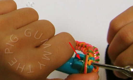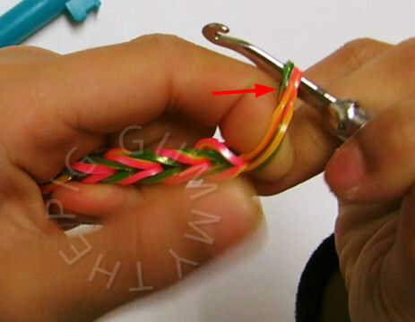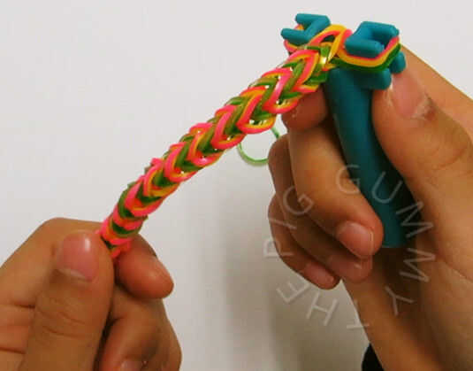 Tutorial pulsera de telar del arco iris espina de pescado (6 / 8 paso)