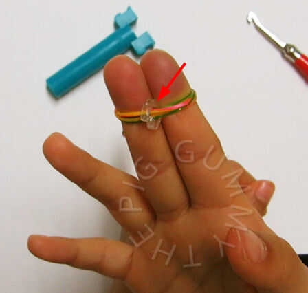 Gobierno-Gobierno es tu pulsera debe como cuando listo.Paso 1: Lo que usted necesitaUsted necesita un telar, bandas y un gancho.Paso 2: Empezando Hacer una figura de 8 con una banda y ponerlo en las 2 clavijas. Entonces puso dos bandas más en eso. po