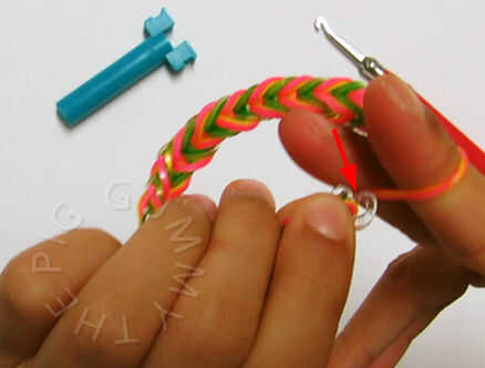 Tutorial pulsera de telar del arco iris espina de pescado (7 / 8 paso)