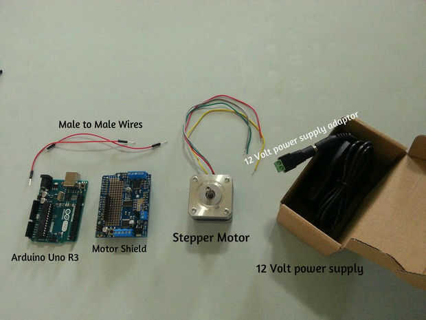 - Un Motor del Steppper, específicamente un tamaño NEMA 17, paso de 200, 350 mA de 12 voltios Motor de pasos. Enlace al producto