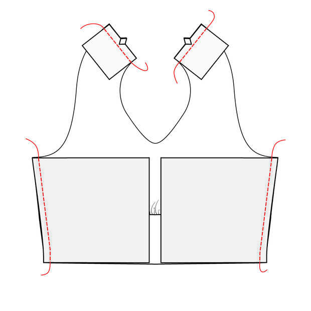 Coser las piezas de Unión correa posterior a las correas y coser las piezas blusa espalda de la blusa delantera. Planchar los márgenes abiertos.