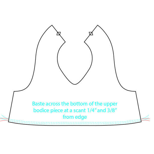 En primer lugar, comenzamos por Hilvanar dos líneas en 1/4" y 3/8" desde el borde inferior del superior delantero.