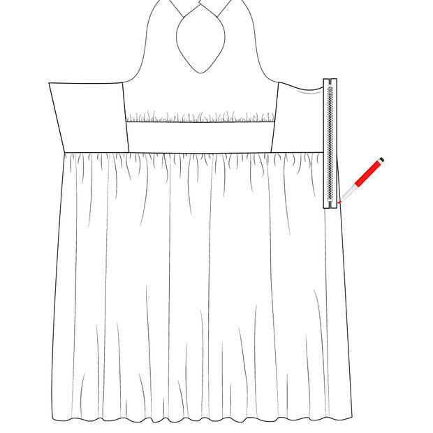 Con su marcador para tela o jaboncillo, coloque una marca en su falda donde es la parte inferior de la parada de cremallera.