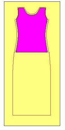 3. extender la línea más allá de las caderas hasta la rodilla (añadiendo 1" dobladillo)