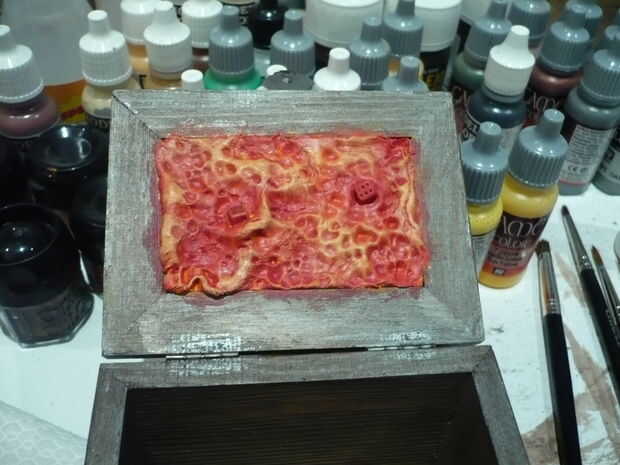 4. Pasamos un at de pintar para simular este caso lava y fuego junto con los otros detalles, yo puesto ojos para darle un aspecto gore.