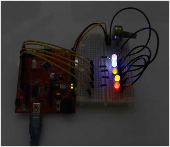 El resultado de demostración se muestra como la foto superior. Para obtener más vistosos efectos ajustando el potenciómetro.