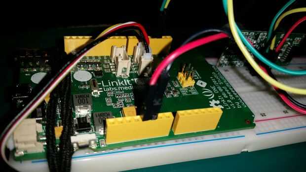 Conectar la pantalla de retroiluminación de RGB LCD Grove al Grove puerto LinkIt un marcado "SCL SDA 5V GND"