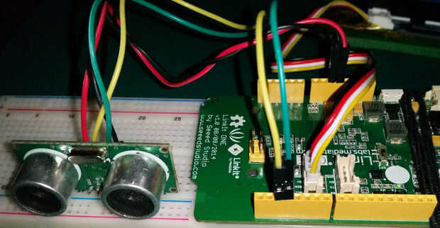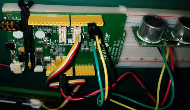 Conecte un cable verde puente de macho a macho de columna 41 (Echo) a D2 en LinkIt una.