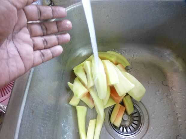 • Lavar las rodajas en agua corriente para eliminar cualquier sap se pegue a la superficie