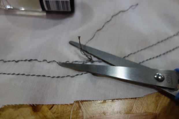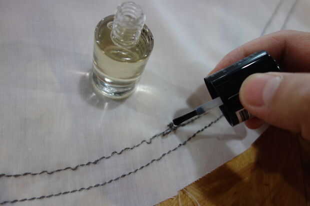 Asegúrese de cortar cualquier exceso roscas para evitar cortocircuitos. Para evitar que se deshilache el hilo conductor, frote un poco de esmalte de uñas transparente en los nudos. No hacer demasiado o más podría conseguir en su tela. Además, tenga en cuenta algunos esmalte de uñas es conductor cuando no seca. Así que teniendo en cuenta no cortocircuitos durante este paso.