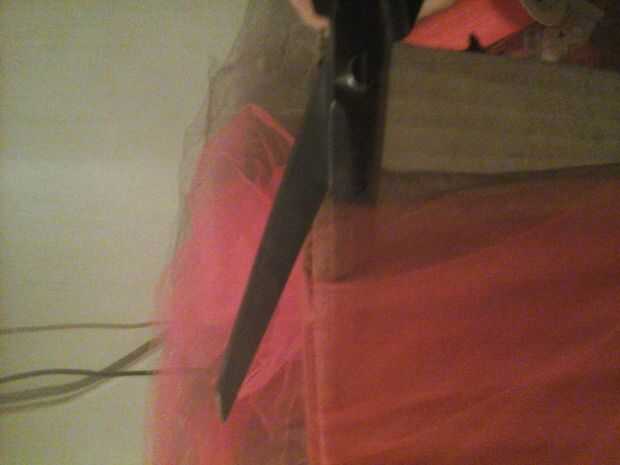Ahora el lado que comenzó a envolver que el tul corta el lado de tul esta hará que no hay bordes irregulares