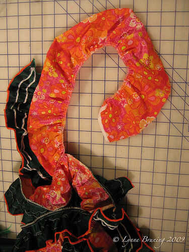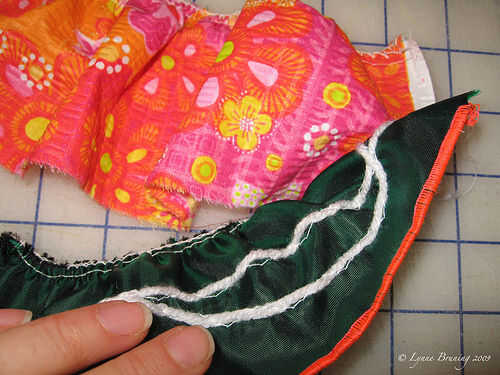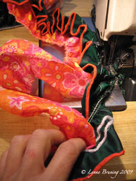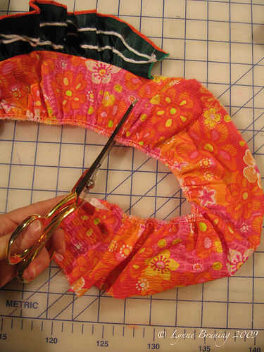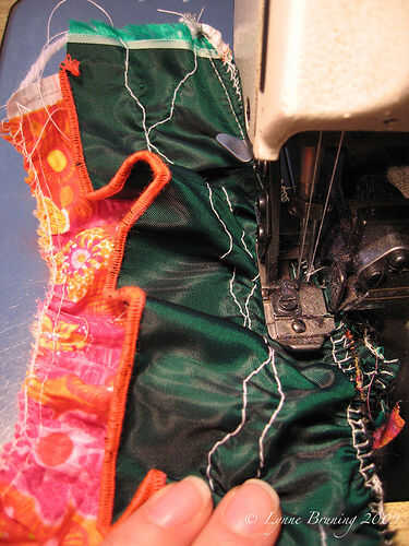 Coser el lado recogidas hacia arriba. Esto le permite más control sobre los frunces.