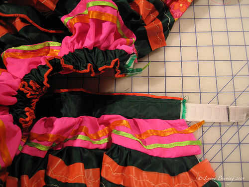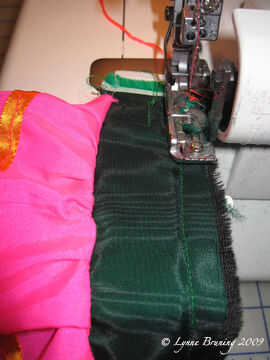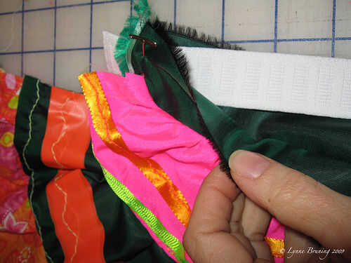 Usando un pie para cremalleras y puntada recta coser el cierre de la banda de cintura.