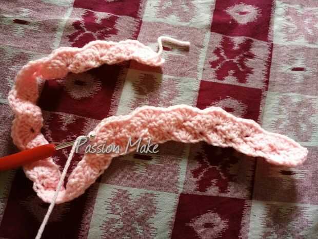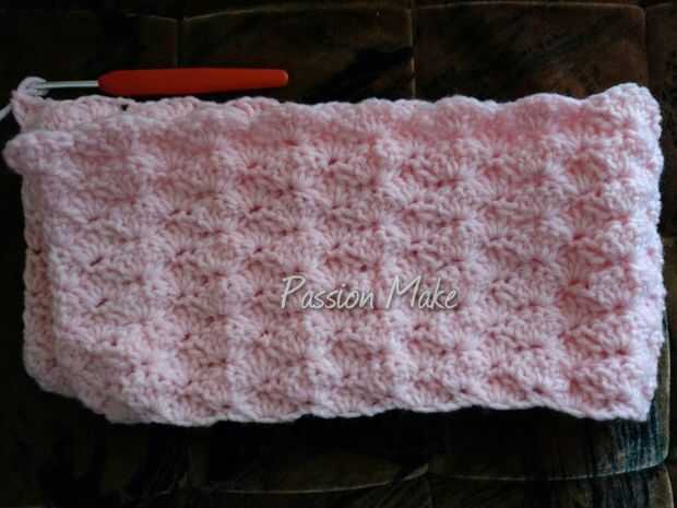 Fila 1: 2 dc en ch 4 de gancho, * sk 2 sts, 1 sc en el siguiente st, sk 2 CTS, 5 dc en próximo st ** repetir de * a ** hasta hay 3 sts restante, sk 2 sts, sc en pasado st, gire.