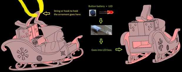 Agujero en ornamento: imprimir tux_whole_led_box. Poner el LED + batería a través de las led como se muestra en la imagen. Cinta por ese agujero. No tan bonito como el anterior, pero cambiar el LED sin romper aparte el ornamento.
