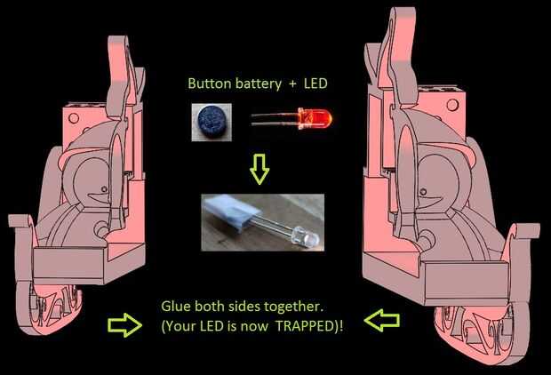 LED de reventado: imprimir tux_half1 y tux_half2. Poner el artilugio de batería LED y botón en uno de ellos. Unir las mitades y atrapando su LED!