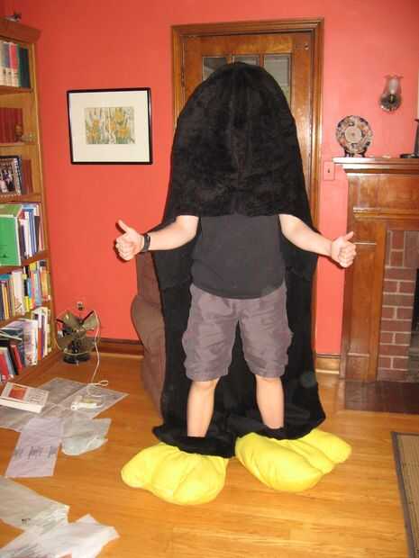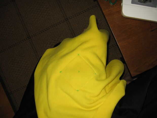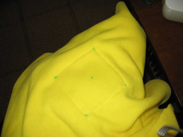 Tiempo para sujetar los pies a Tux. Voltear el lado derecho del cuerpo, por lo que la piel es en el exterior. En el patrón de la muestra que se deben adjuntar pies de Tux en el cuerpo principal, no el pompis, pero para poder caminar semi-normalmente, poner los pies en el pompis en su lugar, pero todavía cerca del frente. Soporte dentro del traje y decidir dónde desea los pies para ir. Cuando usted sabe donde quiere, marcar aquellos puntos claramente en el cuerpo y marcar el centro de dos piezas. En el exterior del traje (furry lados juntos otra vez), fijar los pies en su lugar, hacia adelante. 4 pernos deben ser suficientes; sólo se cose una pequeña plaza en el cuerpo, lo suficientemente grande para el pie, para ir a través. Mis alfileres eran aproximadamente dos pulgadas de medio punto, pero asegúrese de que el cuadrado marcado hacia fuera es más de lo suficientemente grande como para que su pie y tobillo. Seguir adelante y coser esta plaza y cortan un agujero dentro de la Plaza. Apenas corté desde el centro a lo largo de las diagonales hasta que llegué a la Plaza, pero cualquier método de eliminación del material va a hacer. Para terminar los pies, tirón por el agujero y coser la otra mitad del pie lado (furry juntos), luego voltear hacia atrás a través del orificio. A pocos pasos más para ir!