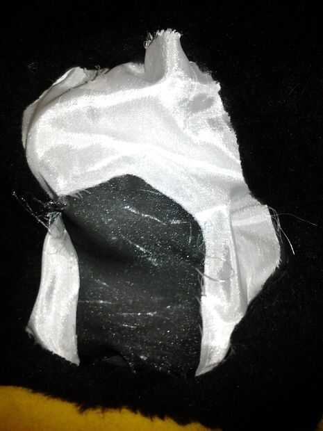 Último paso de la construcción! Usé a una tela blanco sedosa para los ojos, aunque nada blanco va a hacer. Usar una malla negra para la pupila, más oscuro es el más bajo será su visibilidad. Corte dos áreas ovulares o arqueadas por encima de la nariz, simétrica en la medida de lo posible. Cortar cualquier forma que desee el alumno en el tejido blanco que utilizas para los ojos y pegamento o coser el material de la pupila en el lado de ese agujero que será dentro del traje. Terminar pegando el ensamblado/pupila ojo al interior de los orificios en la parte exterior del traje.