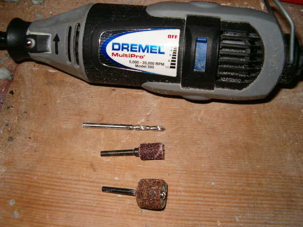 (2) herramienta de una Dremel con un accesorio de taladro, amoladora pequeña y amoladora grande (puedes usar una herramienta de corte en su lugar, pero no tengo uno)