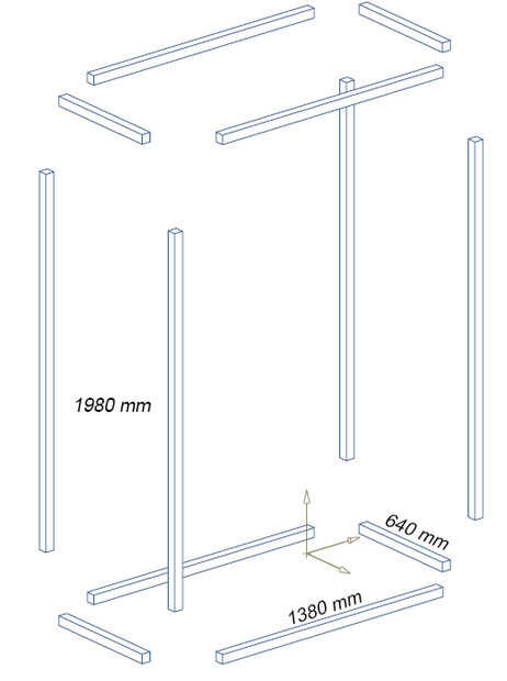 Estarás comenzando por aserrado (21) woodens (50x50x2500mm) de vigas y tableros MDF (7) (2440x1220x6mm) en la longitud adecuada.