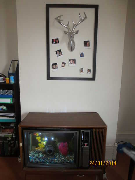 este acuario fue diseñado para un tanque de 40 galones criador en la parte superior, con una puerta lateral oculta para permitir que un tanque de 20 galones largo para colocarse dentro de un colector de aceite. Fue más un poco de tamaño para permiti