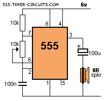 5. no conecte un PNP a la salida de un 555 como se muestra en el diagrama siguiente. El pin 3 no se levanta lo suficientemente alto como para apagar el transistor y la corriente por el circuito será excesiva. Utilice un controlador de NPN.