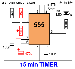4. no utilice electrolíticos de alto valor y alta resistencias a producir retrasos. El 555 no es muy confiable con valores de tiempo superiores a 5-10 minutos. La razón es simple. La corriente de carga para el electrolítico entre microamperio de 1-3 en el diagrama siguiente (cuando el electro está empezando a cobrar) y se reduce a menos de 1 microamperio cuando casi se carga el electro.