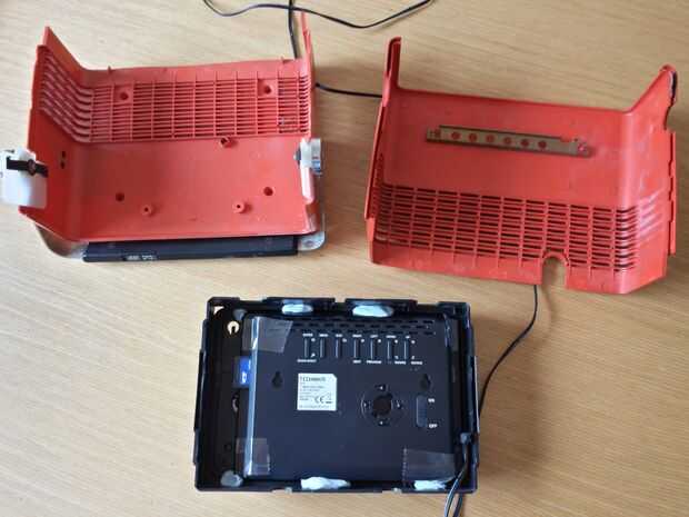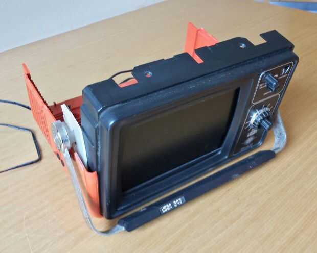 El chasis montado en el espacio dejado por el tubo, aseguró aquí con blu-tac y más tarde caliente pegado. No era sin embargo un ajuste exacto, un poco de la pantalla estaba escondido a un lado.