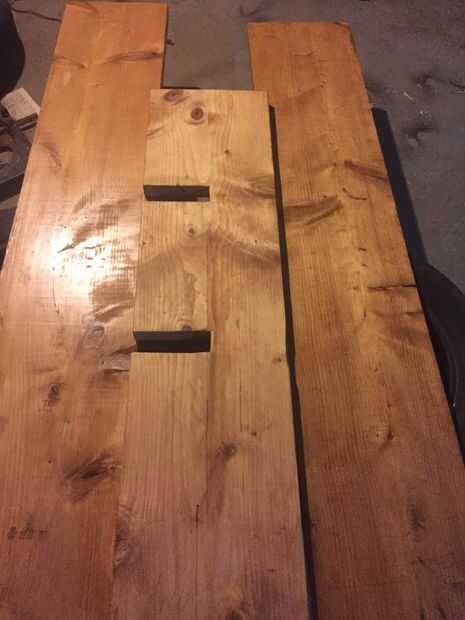 Una vez acabado de cortar todas las piezas puede mancharlo o pintar lo que usted desea. Fui con una mancha porque parecía mucho mejor.