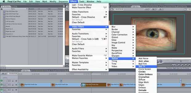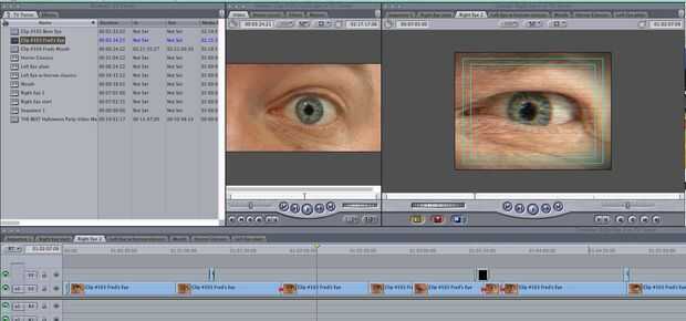 Para los "otros ojos", duplicar el original video de globo ocular, pero aplica un efecto de espejo (para crear un ojo izquierdo del ojo derecho). También ordenó volver a algunas secciones del vídeo y acortar un poco. Aseguraría que los dos globos oculares sería aleatorios, en lugar de accidentalmente en sincronización. Con los videos dos veces del lazo, naturalmente a estar cambiando la noche entera como funcionaron los videos.