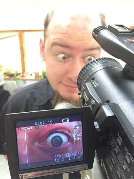 Que tenía el actor apoye la barbilla sobre un soporte de altura ajustable y tenía la cámara en un trípode para minimizar absolutamente el movimiento de cámara y sujeto. Entonces, tuve el actor seguir algunas instrucciones simples - mirada izquierda, mirada derecha, abrir y cerrar, etc., filmando durante varios minutos. Sólo filmé un ojo. Utilizo un "flop" espejado especial efecto en el software de edición de vídeo para crear el otro ojo.