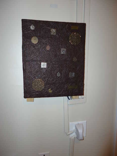 - Arte de tela está en una bisagra de dos y artilugios de slider para permitir cubrir la TV o el resto de nuevo contra la pared. Esta forma, nunca debe encontrar un lugar para poner el arte que está a salvo del conejo.