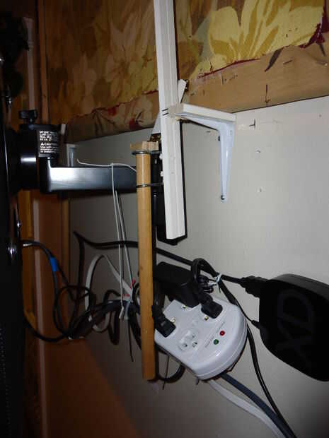 - TV está montada a la pared en un brazo extensible (comprado con el televisor).