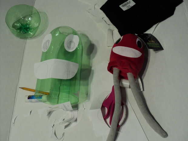 Puede rellenar la pieza inferior dentro de la botella para darle mayor rigidez.
