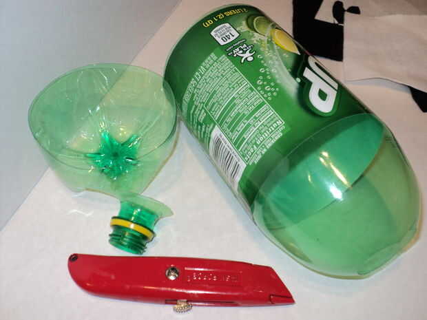 Cortar la parte inferior de la botella es donde empieza a curvar hacia el final.