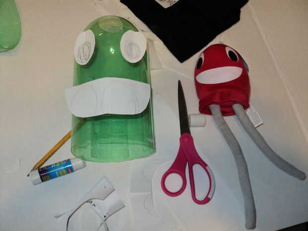 Utilice un palillo del pegamento o cinta para colocar los ojos y la boca.
