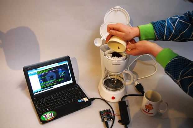 A continuación, conectar la cafetera al relé y conecte el relé a una salida regular. Su fácil!