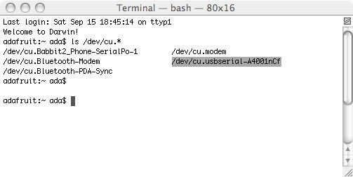 cambiar COM4 en lo que se llama el puerto serie que conectará a lo XBee con. Bajo windows su algunos COMx puerto, bajo linux y mac su algo como /dev/cu.usbserial-xxxx Revise el directorio/dev / / dmesg o