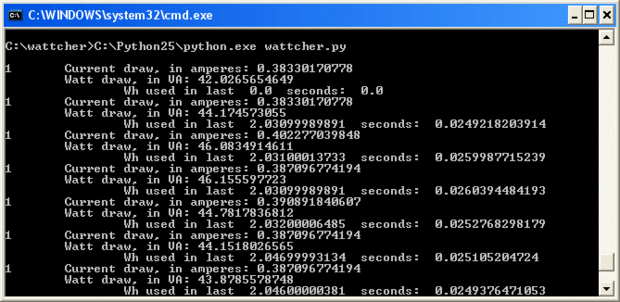 Ahora ejecute python ejecutando el comando C:\python25\python.exe wattcher.py